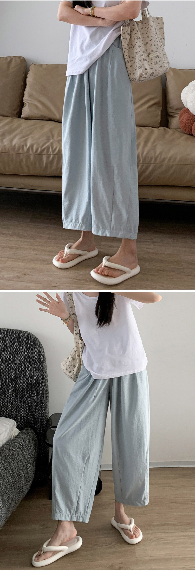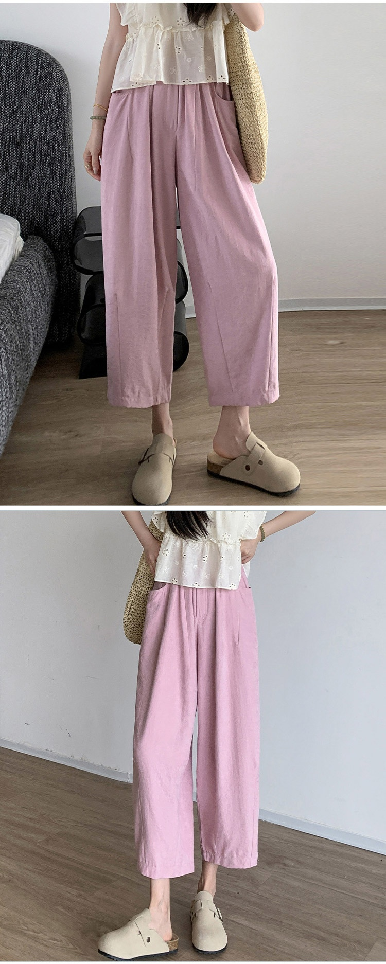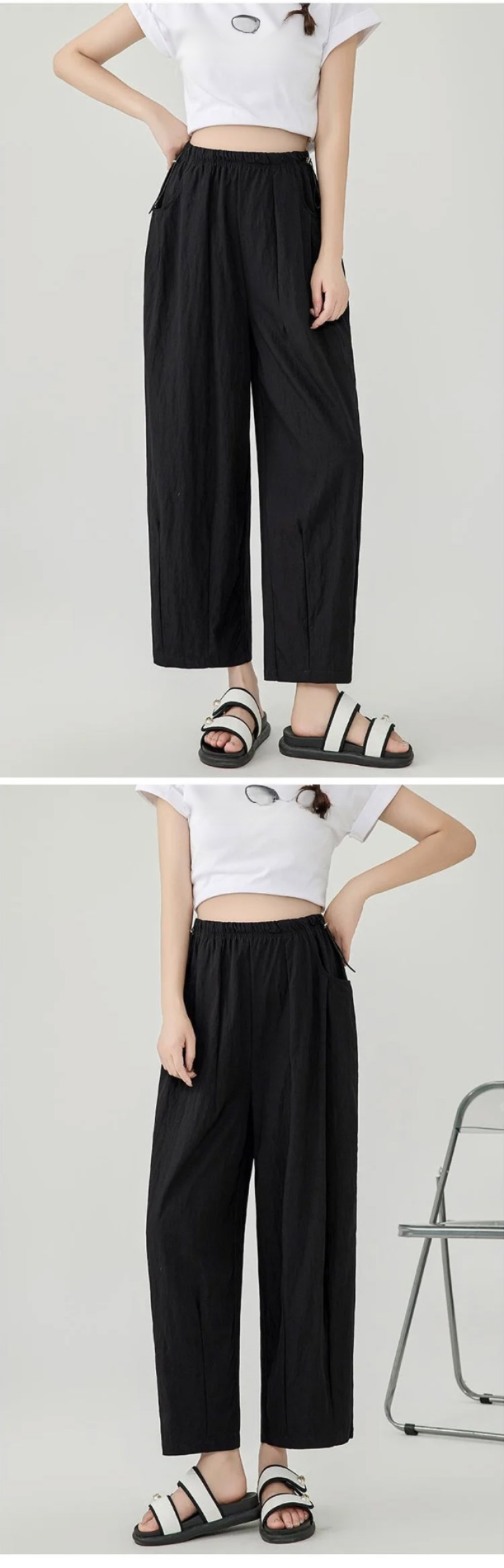 여성용 봄여름 하이웨이스트 루즈핏 배기팬츠