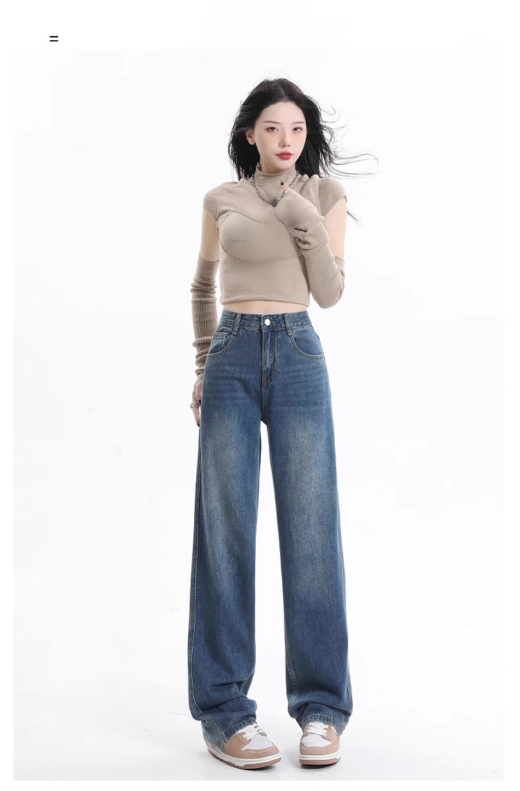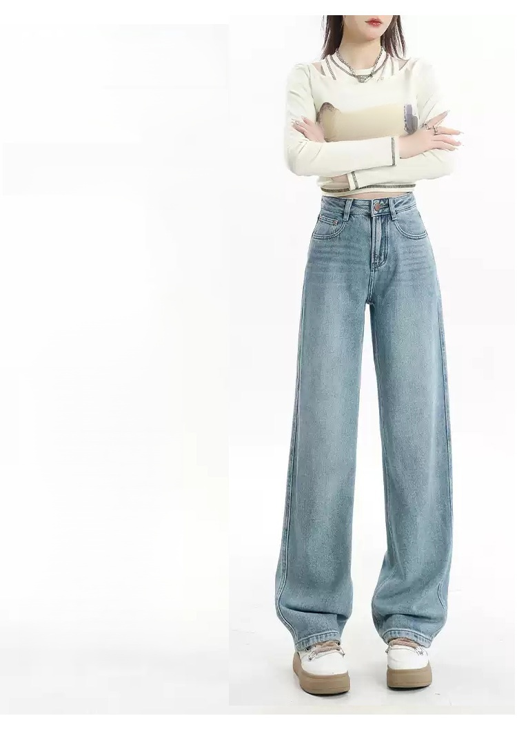 날씬해 보임 하이웨이스트 루즈 스트레이트 청바지