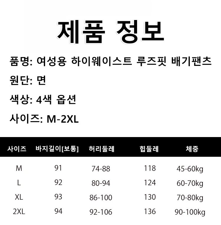 여성용 봄여름 하이웨이스트 루즈핏 배기팬츠