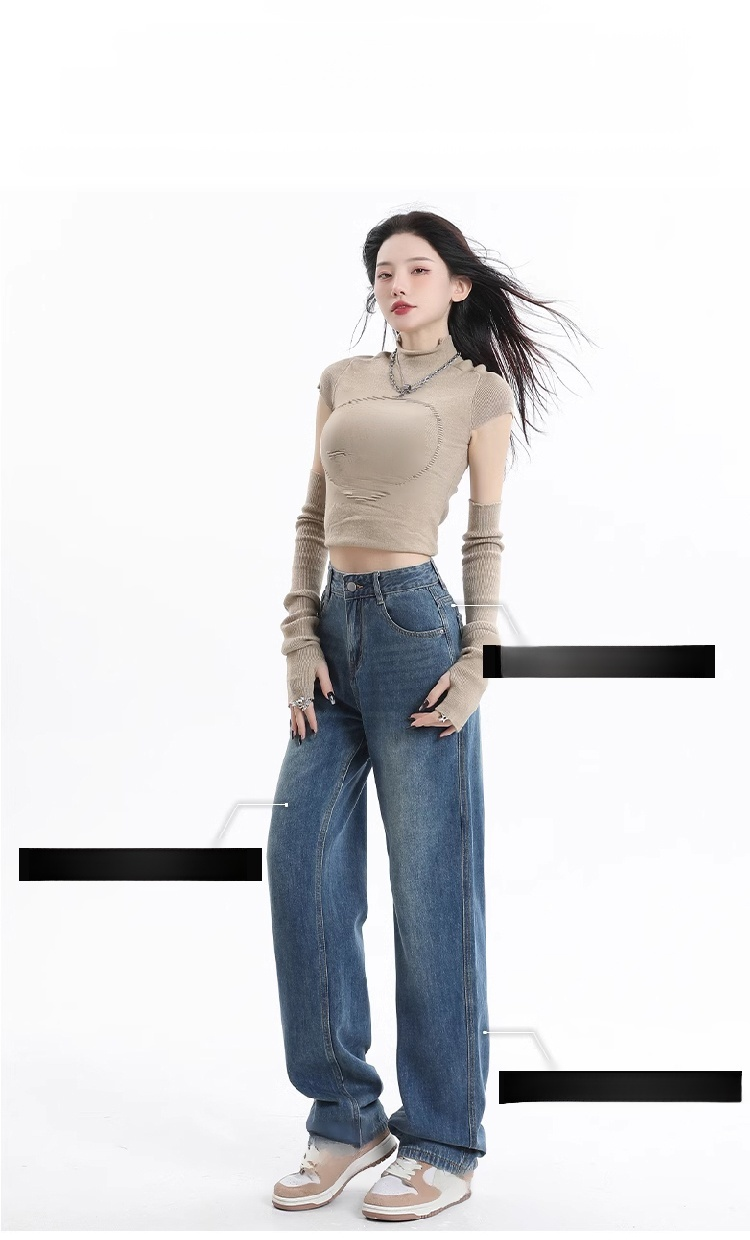 날씬해 보임 하이웨이스트 루즈 스트레이트 청바지